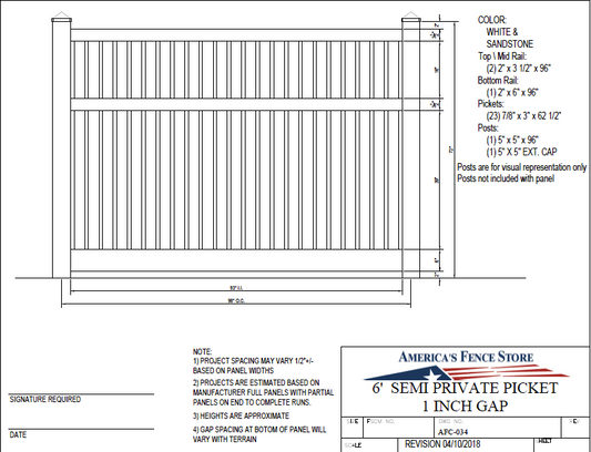 Sandstone Tongue & Groove Picket 7/8" x 6" x 60-1/4" For Vinyl Fences