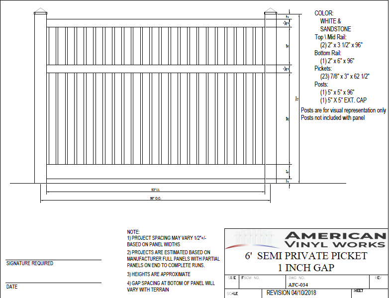 Introducing the 6′ × 8′ Semi-Private Fence Panel, a refined solution for homeowners seeking both structure and subtle openness in their yard. This high-performance vinyl fence panel arrives unassembled and includes two 2″ × 3½″ × 96″ rails (top and mid), one 2″ × 6″ × 96″ bottom rail, and twenty-four ⅞″ × 3″ × 62½″ pickets, all engineered with precision for seamless installation. The ¾″ air gap between pickets softens wind loads and permits airflow, helping reduce pressure on the fence while maintaining meaningful privacy.