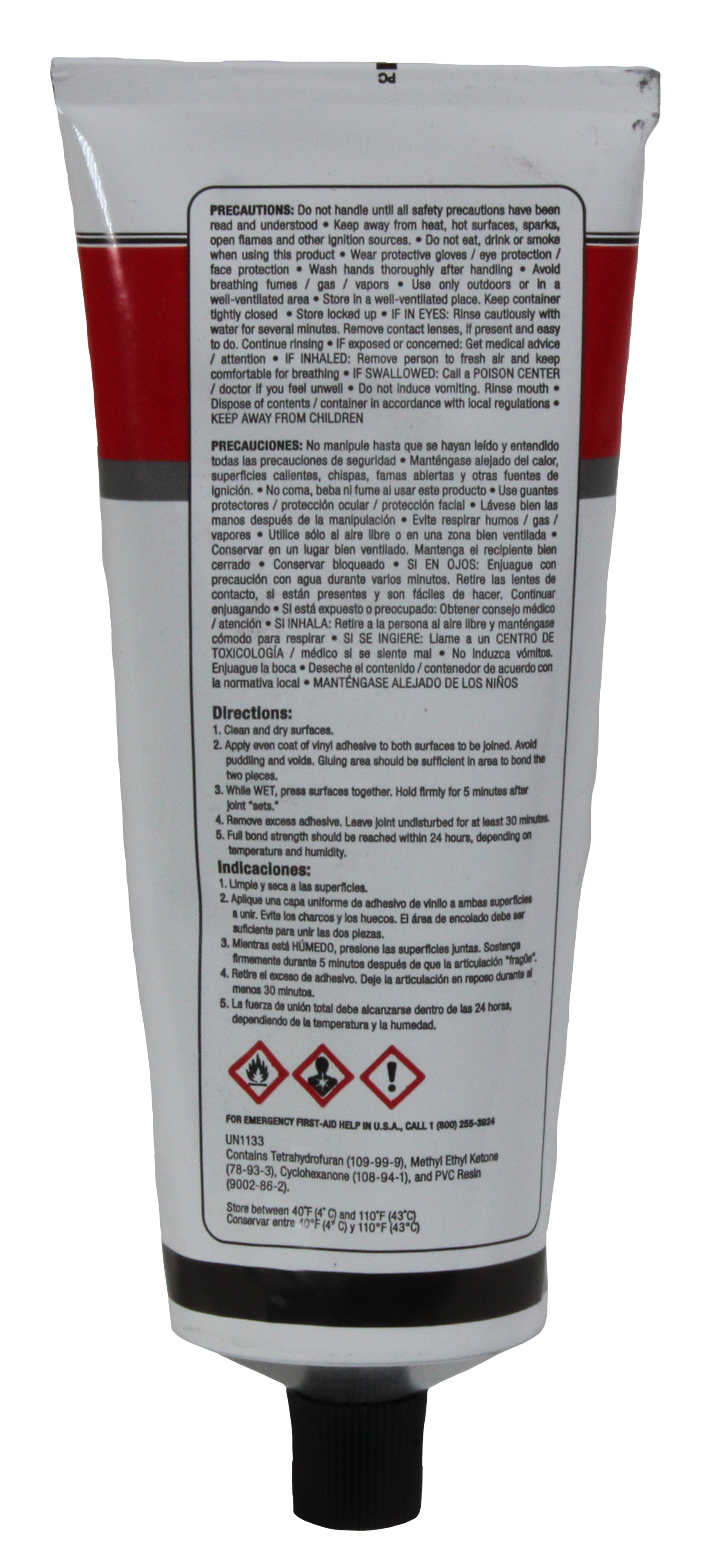 - FOR ASSEMBLING VINYL PRODUCTS: Strong, flexible bond for attaching PVC parts. Commonly used when assembling vinyl fences, decks, windows, trims, decks, and rails.