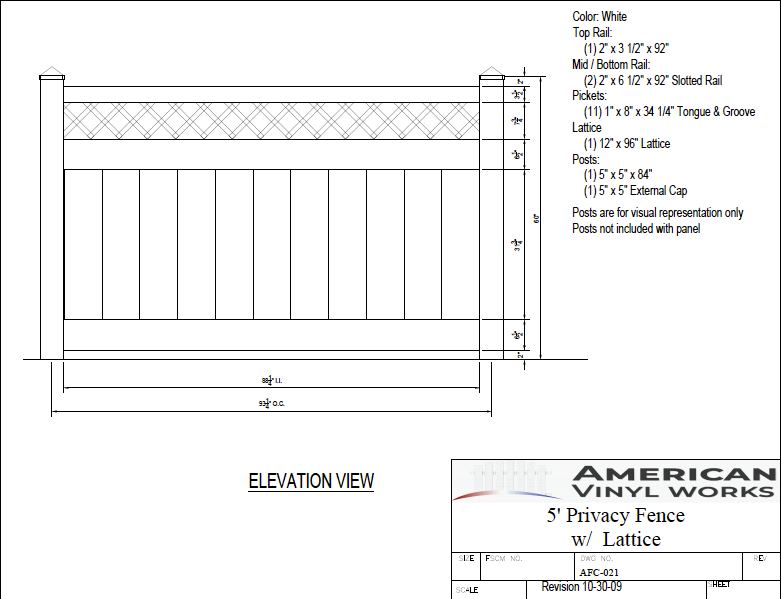 ![[Price Per Foot - AFC-021] 5' Tall Privacy Fence with Lattice Accent For Vinyl Fences](http://americanvinylworks.com/cdn/shop/files/AFC-021-AVW_1475888f-067b-4255-8f9f-66f227ed2dde.png?v=1723228107&width=1445)