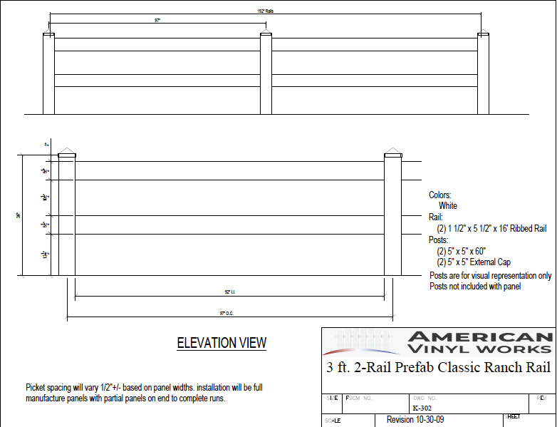 ![[Price Per Foot - K-302] 3' Tall 2 Rail Split Ranch Rail For Vinyl Fences](http://americanvinylworks.com/cdn/shop/files/K-302-AVW_5dd4e784-9a5d-4499-a1ea-180918820658.png?v=1723234885&width=1445)